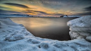 En estos últimos días, de la niebla, hemos pasado a varios amaneceres parciales con mucha oportunidad de fotografía en la hora dorada, azul , púpura y mezclas jejeje. La bahía ya se ha descongelado, quedando solo el hielo en la orilla de la playa, que sin duda- y no lo niego-, su belleza es permanente y cada jornada es diferente con un escenario que cambia constantemente con el lúdico cielo adornado por inquietas nubes teñidas de múltiples colores y tonalidades. Les dejo dos tomas hechas con media hora de diferencia, donde el cambio de rojo-violeta a amarillo en realmente atómico!!!