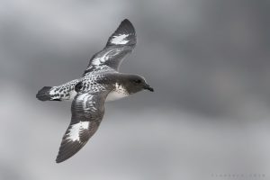 Por estas latitudes llega esta hermosa ave pelágica, que puede capturarla mientras una bandada de ellas efectuaban pasadas rasantes por la costa del mar de Drake.