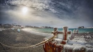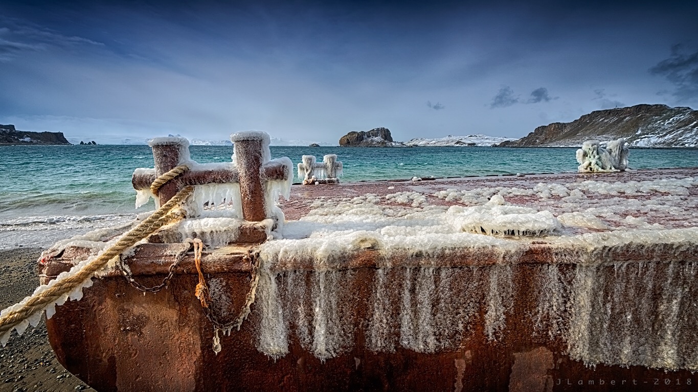 Hoy día amaneció despejado pero muy helado!. La escarcha se hizo presente y, a pesar de los rayos solares que inundaban la bahía, éstos no lograron derretir el hielo formado.