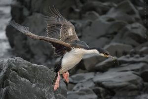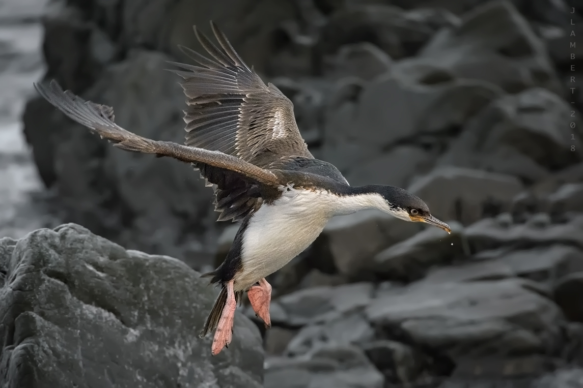 Siguiendo con la fauna local , les dejo este Cormorán Antártico inmaduro que se posó en las rocas de la costa.