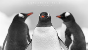 Esta toma fue hecha hace unos días; captando tres Papúas en una cuasi-simetría que no pude obviar y haciendo un proceso pseudo-BN en que mantuve el color rojo. Espero les guste!